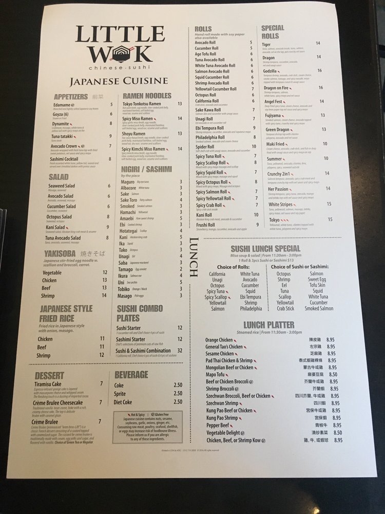 Located in Lakeview, Chicago, Little Wok is a trendy and casual Sushi Bar with a Chinese twist. The restaurant offers a diverse menu with vegan and limited vegetarian options. Little Wok is perfect for lunch or dinner, offering delivery and takeout services. Their menu includes classic Chinese dishes such as Salt and Pepper shrimp, General Tso's Chicken, and Pad Thai, as well as sushi and ramen options.
